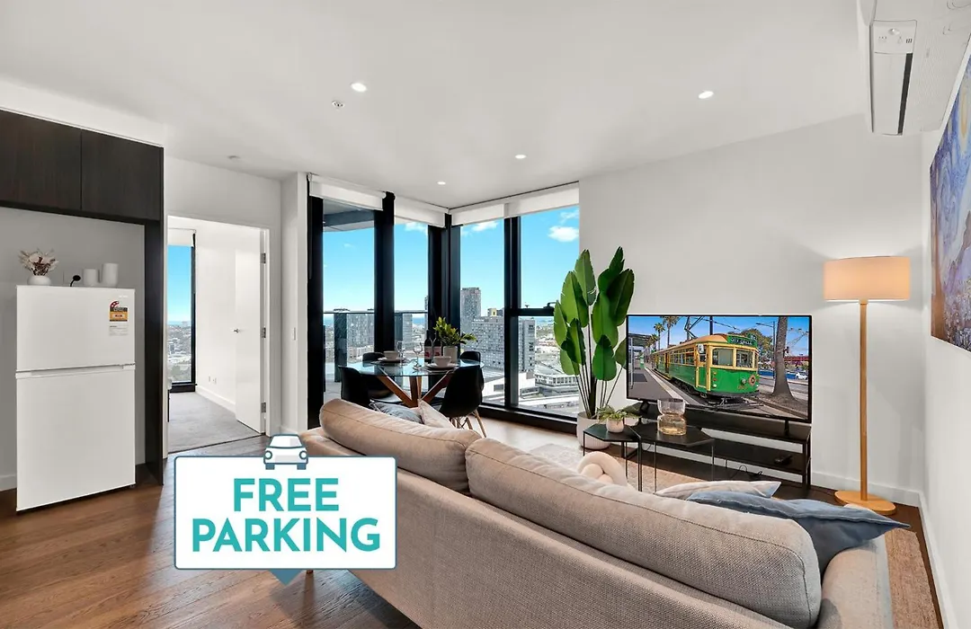 Cet appartement Docklands Skyline Views - Luxury Stay With Panoramic Views - Pool, Gym, Free Parking Access Ville de Ville de Melbourne surplombe la mer et se trouve à environ 5 minutes à pied de BP Head Office. Situé non loin de l'Aquarium de Melbourne, la résidence spacieuse dispose d'une piscine privée pour votre plus grand plaisir.