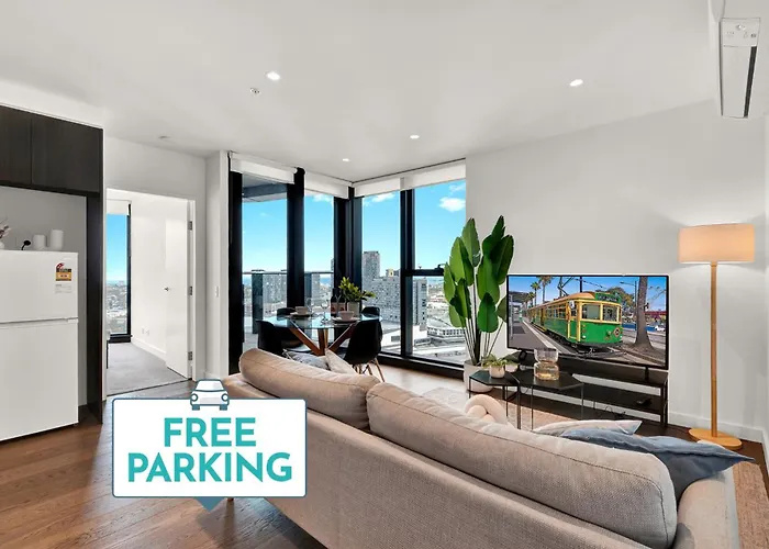 Le domicile de 70 m² est à environ 1 km de la Tour Euréka et à environ 2 km de la Galerie ArtVo. Les jardins Fitzroy sont situés à environ 10 minutes en voiture de l'appartement Docklands Skyline Views - Luxury Stay With Panoramic Views - Pool, Gym, Free Parking Access.